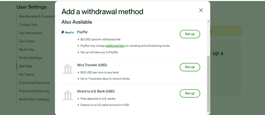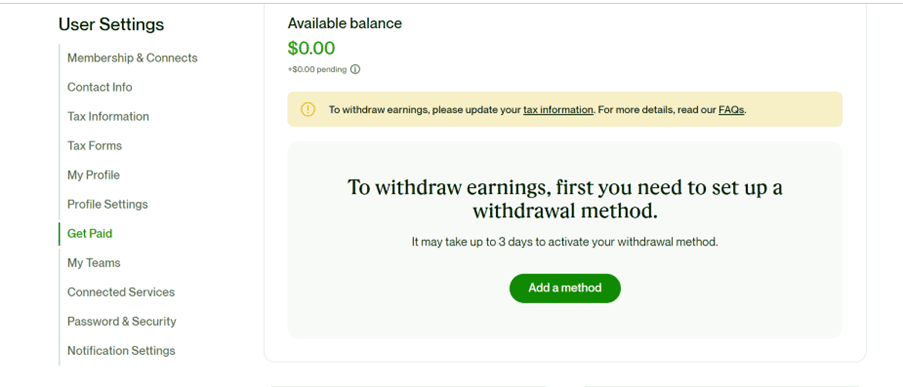 Within the Settings menu, locate and click on “Get Paid” under User Settings. This will lead you to the payment settings section where you can manage your preferred payment methods.