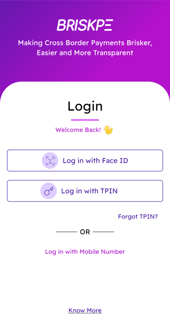 If you’re a new user, you can sign in to our BRISKPE app or web portal. Existing customers can log in using their log in credentials.