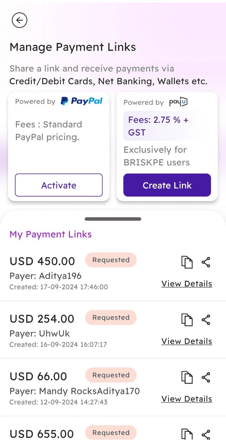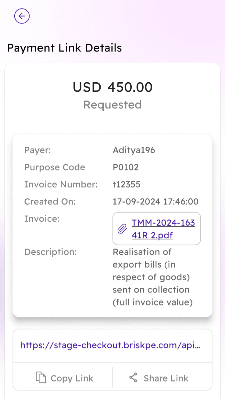 That is where BRISKPE comes into play. We have developed a payment link solution keeping exporters and freelancers in mind. This will help you receive international payments instantly.