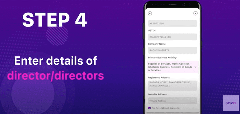 - The next step is to enter your business PAN number and details such as company name and GST number.