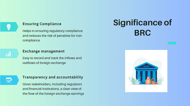 - Transparency and accountability – By providing a clear record of the export proceeds, the BRC improves accountability in global trade transactions. It gives stakeholders, including regulators and financial institutions, a clear view of the flow of the foreign exchange earnings.